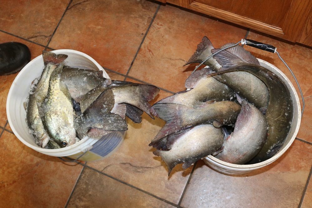 John and I carefully remove the red meat on the inside of the fillets. These fish do not taste muddy at all. They are white, sweet and wonderful.